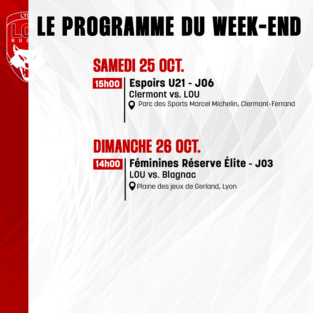 Découvrez le programme du week-end des équipes de l'association du LOU Rugby !