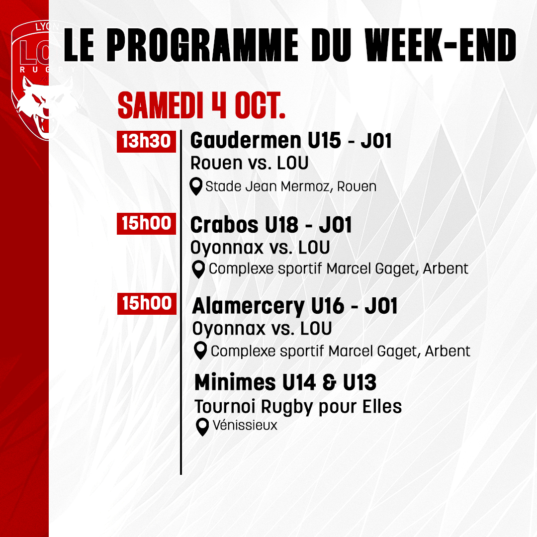 Découvrez le programme du week-end des équipes de l'association du LOU Rugby !
