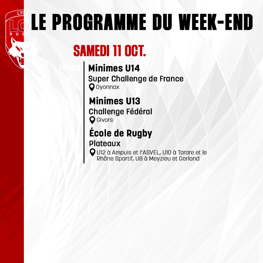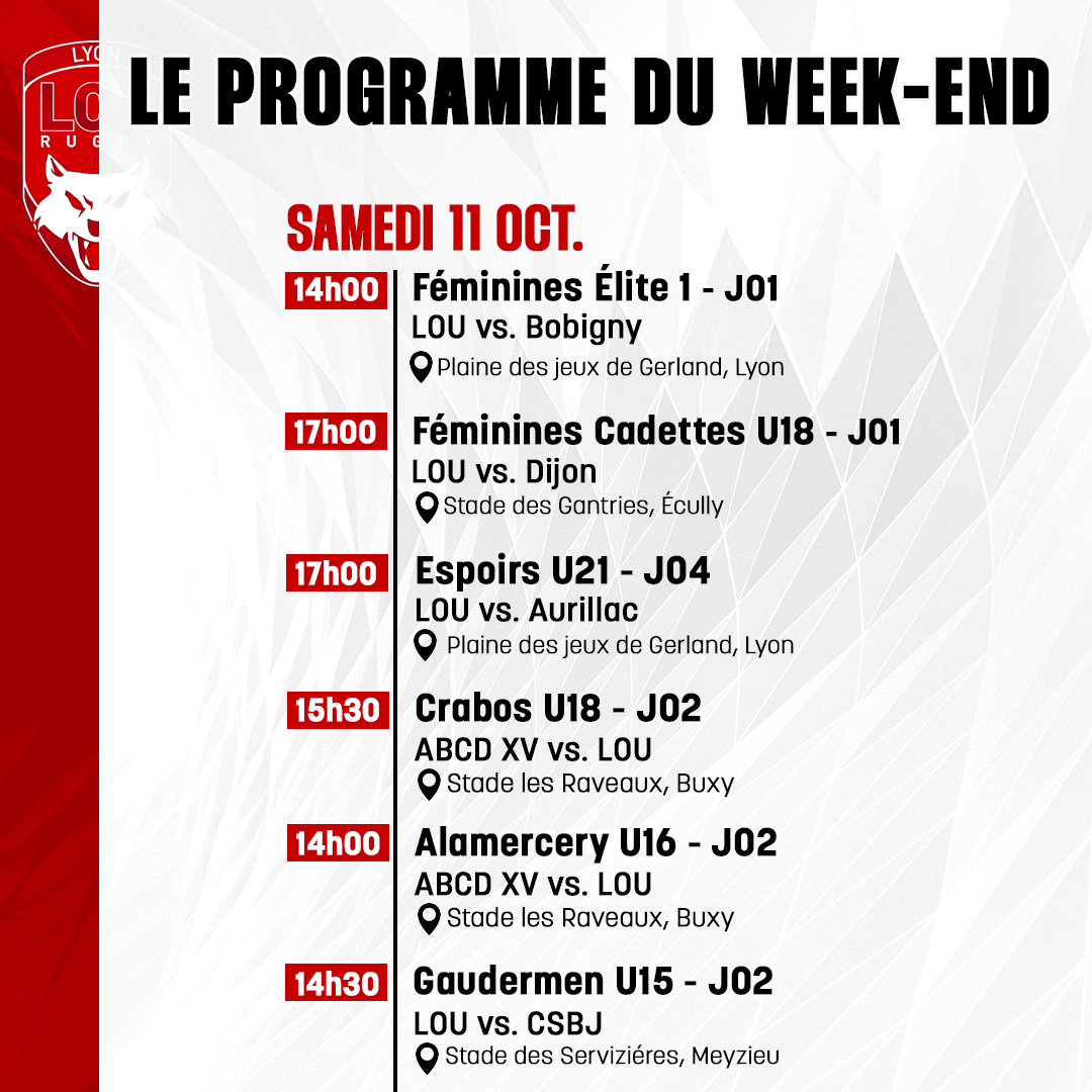 Découvrez le programme du week-end des équipes de l'association du LOU Rugby !